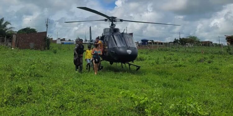 Um grupo formado por 21 pessoas, constituído por cinco famílias, precisou ser resgatado por helicóptero na manhã desta terça-feira (3) após ficar isolado em uma comunidade rural de Santo Antônio, no Agreste do Rio Grande do Norte. A forte correnteza que se formou com as chuvas impediu o deslocamento dos moradores até a área central do município e o acesso a serviços essenciais.