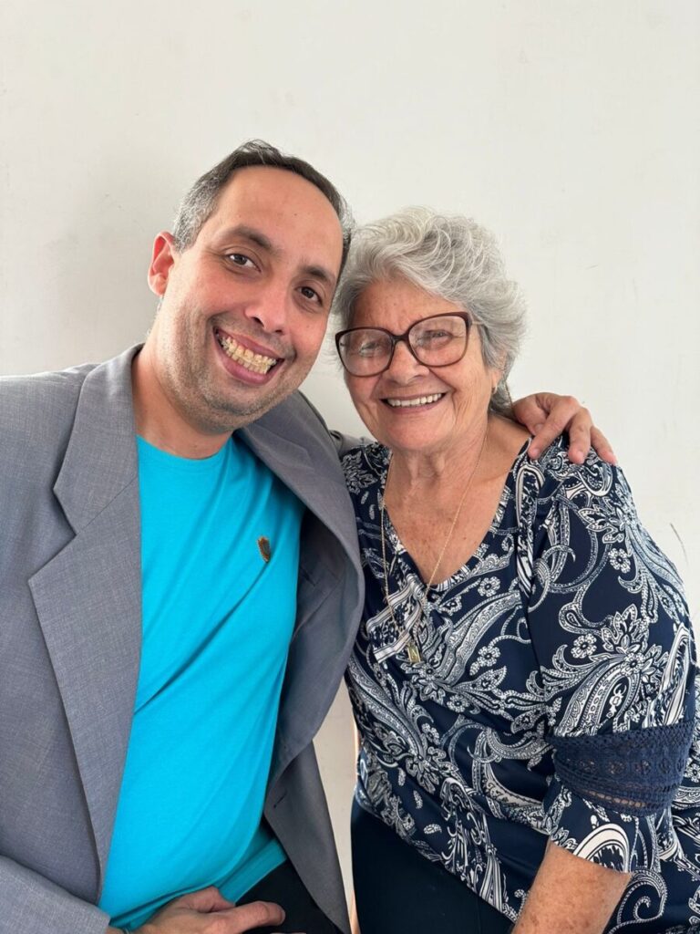 O abraço carinhoso da coluna na querida Ignês Motta de Andrade, presença marcante no evento