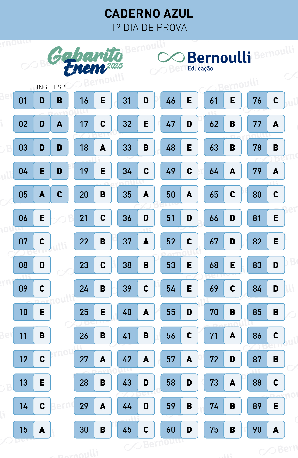 Agora, o gabarito extraoficial já está disponível para consulta. O material foi elaborado por uma equipe de docentes especialistas do Bernoulli Educação, referência no exame. Acesse em www.bernoulli.com.br/enem.