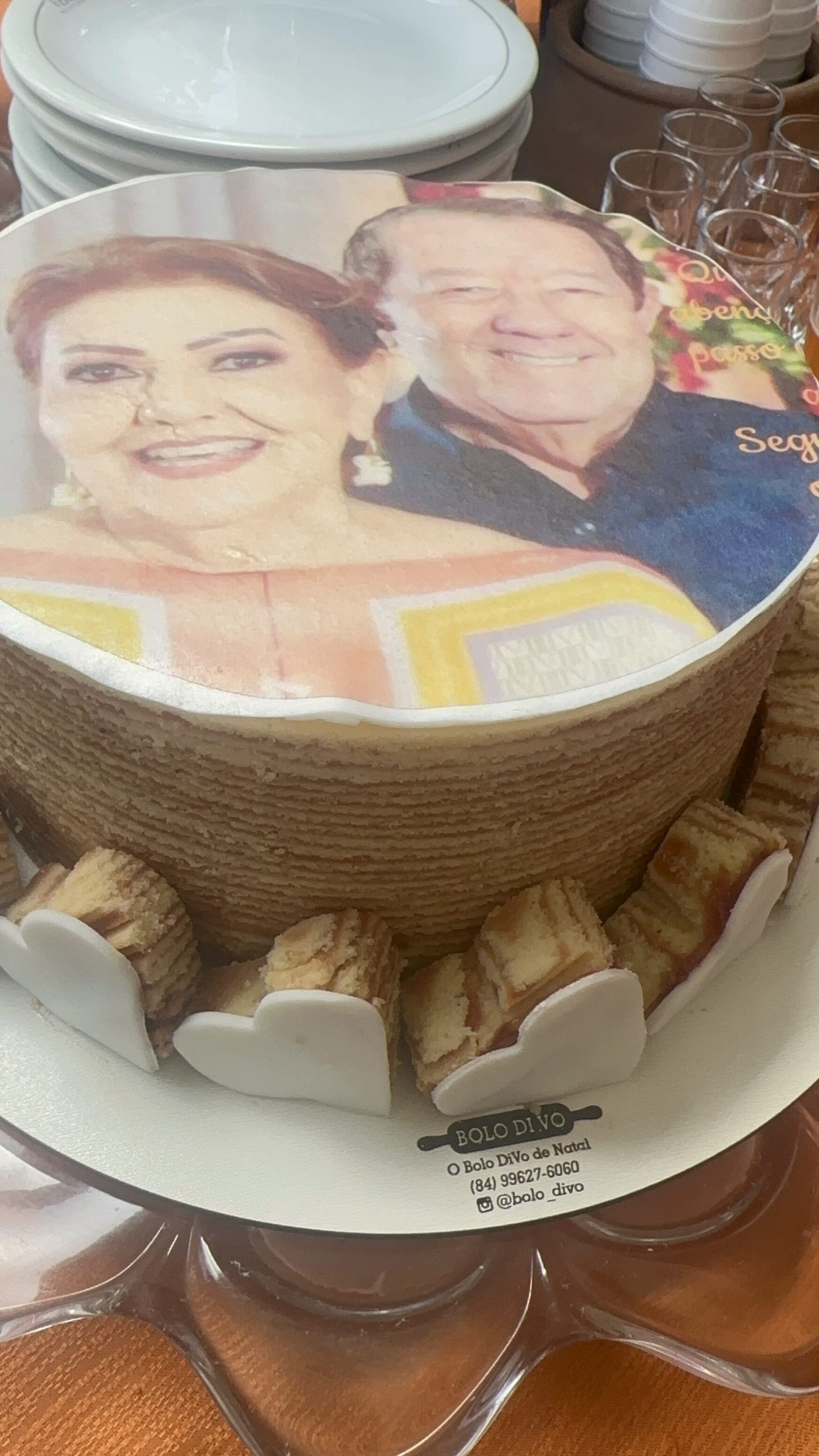 A mesa de sobremesas também chamou atenção: doces preparados com frutas da estação e um bolo especial, estampado com a foto do casal, arrancaram elogios e garantiram o toque afetivo da celebração. Tudo pensado com o cuidado e o capricho que são marcas registradas dos anfitriões.