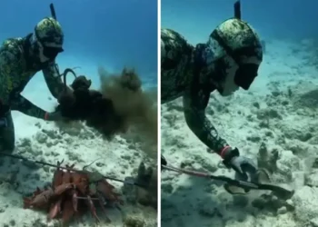 Um mergulho de rotina terminou em susto para um homem na Rússia, após ele provocar um polvo escondido em sua ...