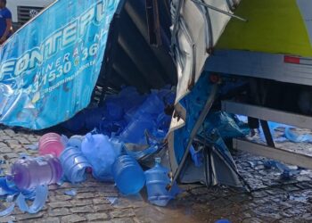 Um caminhão carregado com cerca de 400 garrafões de água mineral tombou na manhã desta segunda-feira (17) e invadiu um ...