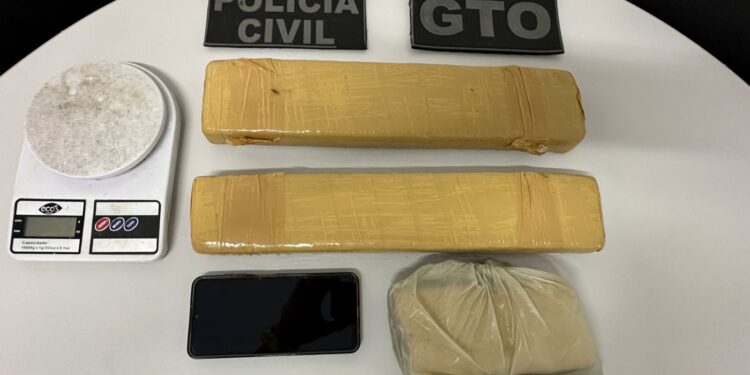 Durante a abordagem, foi apreendida uma caixa localizada na parte superior do imóvel, contendo dois tabletes e uma porção de maconha, além de uma balança de precisão. O material foi apreendido e o suspeito confirmou ser o proprietário da droga.