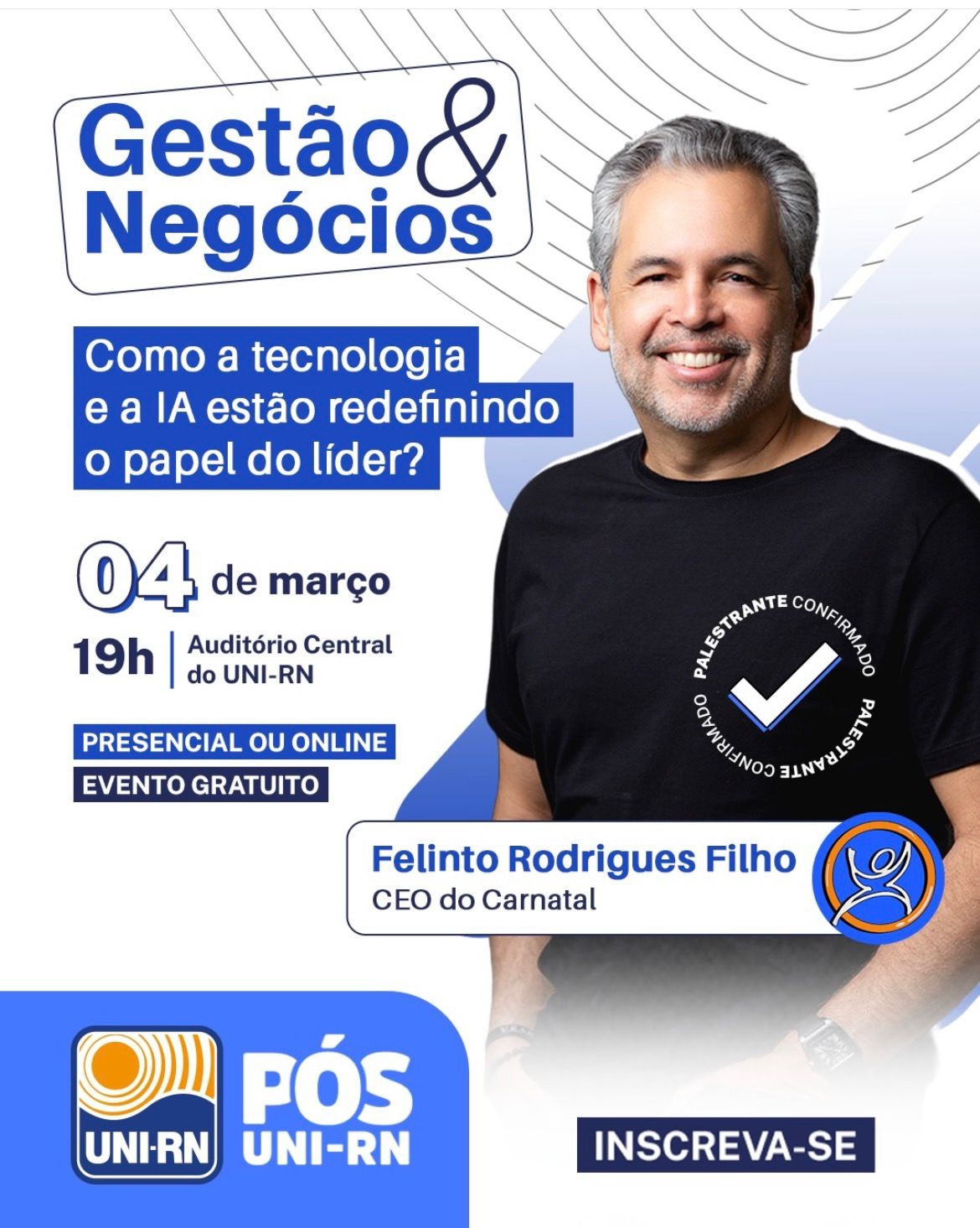 Entre os palestrantes está o CEO do Carnatal, Felinto Rodrigues Filho irá compor a mesa-redonda ao lado de gestores de departamentos de grandes marcas do RN, como a Riachuelo, Sidore e a Escola do Empreendedor.