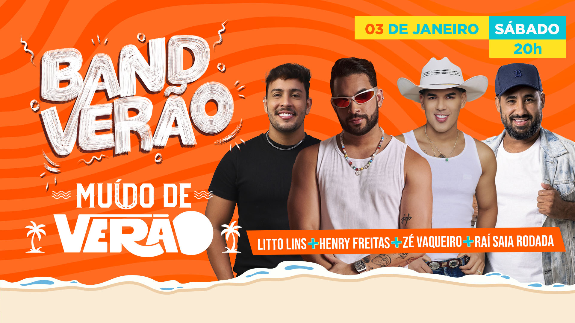 Além da participação da banda Limão com Mel, a noite contará ainda com os cantores Lipe Lucena e Márcia Felipe. A organização do evento não descarta novas participações especiais para marcar a estreia da temporada de verão no RN, que poderá ser acompanhada pelo público de todo o estado por meio da transmissão da Band RN.