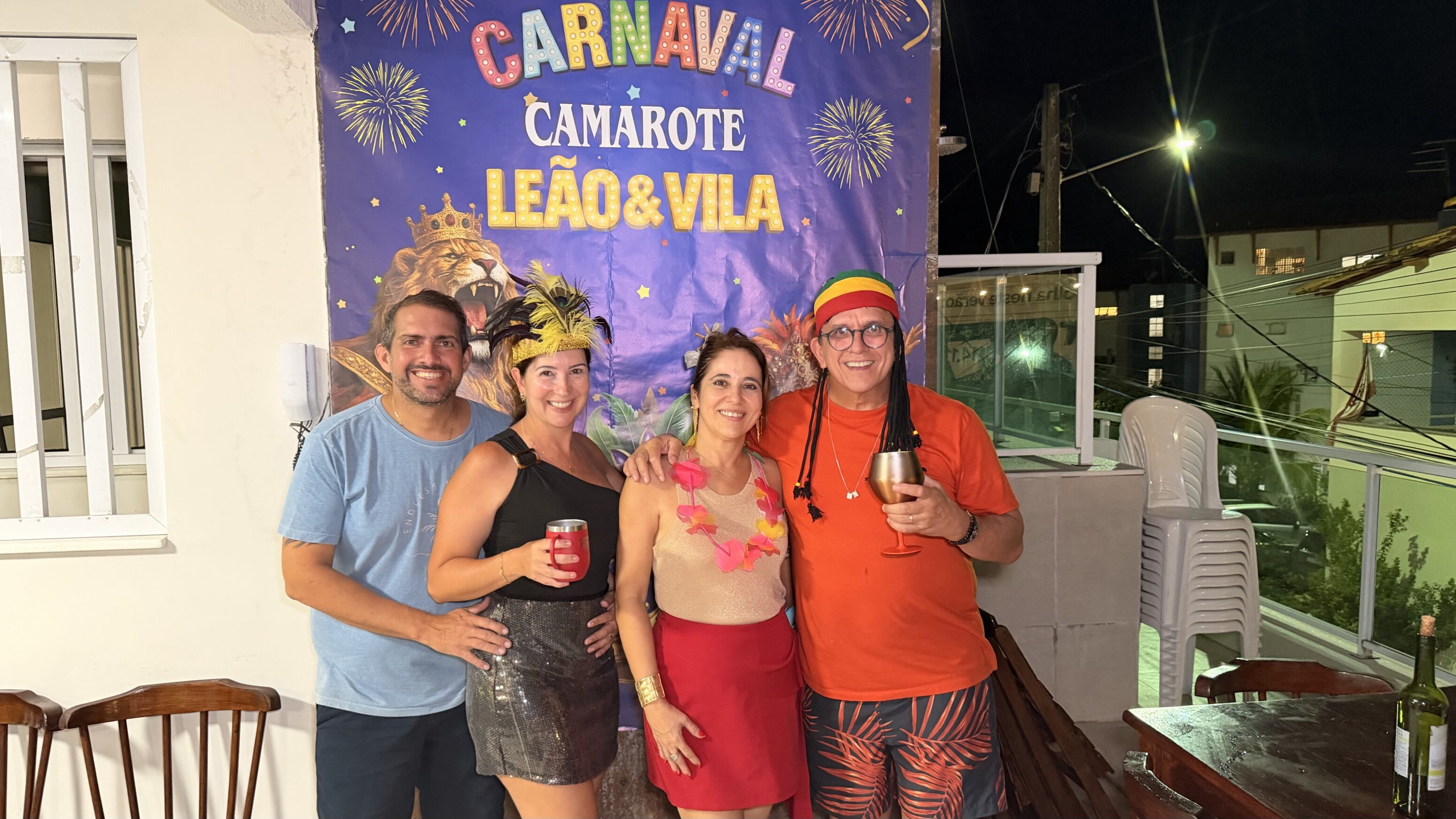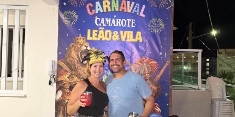 A segunda-feira de Carnaval ganhou um cenário especial na praia de Pirangi. O casal de empresários Guga e Renata Avila abriu as portas, ou melhor, a varanda da residência de verão da família para receber amigos mais próximos em um espaço que já virou tradição: o Camarote Leão e Vila, nome que leva a marca da empresa da família.